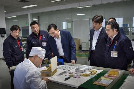 罗荣怀一行参观了公司展厅和科研生产现场,并与球速领导班子、部分中层干部开展了座谈。